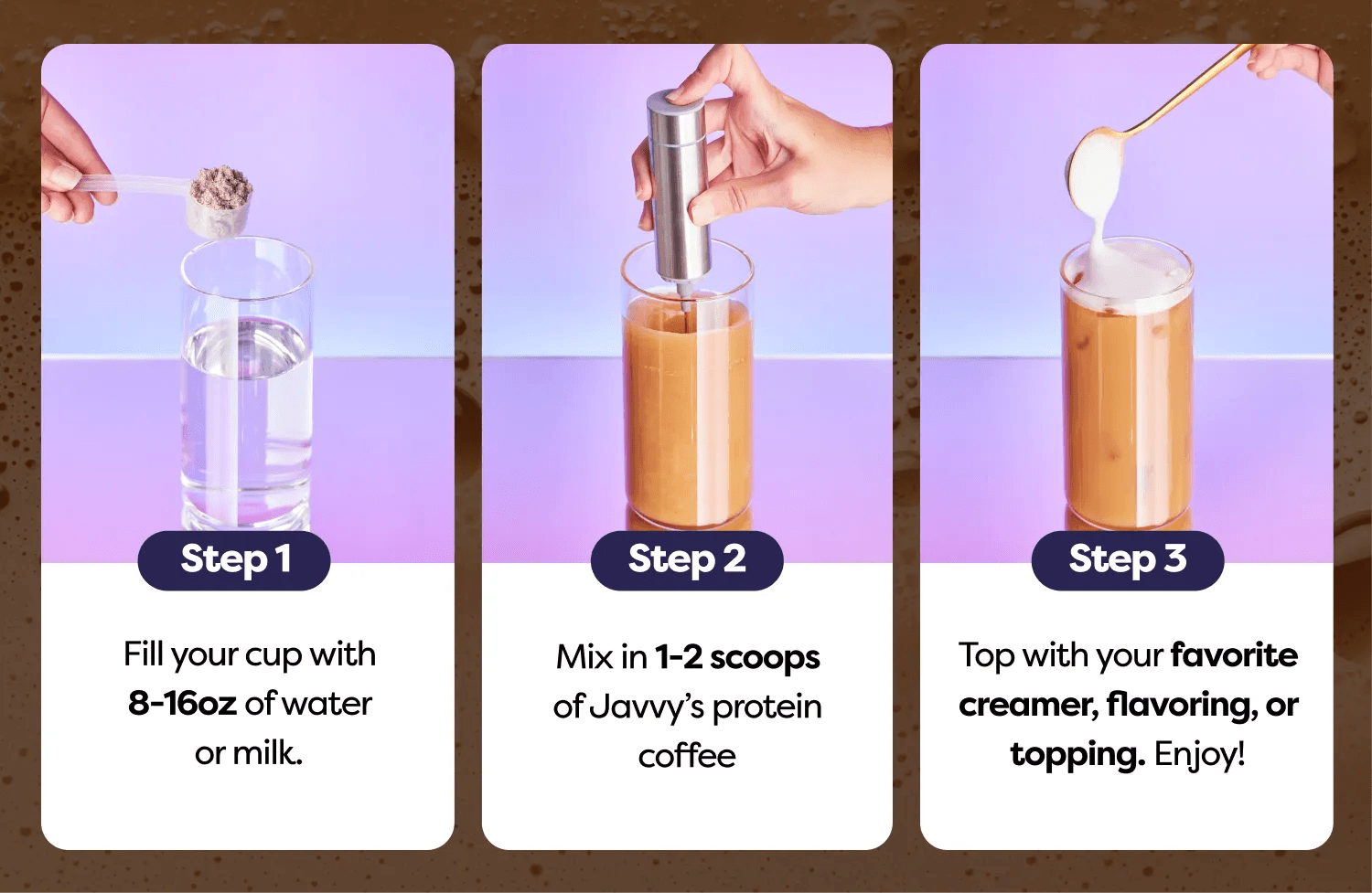 Delicious Black Coffee Taste: Javvy tastes great on its own – just like a freshly brewed black coffee, not a bland protein shake. Or customize it with your favorite milk and flavors.
